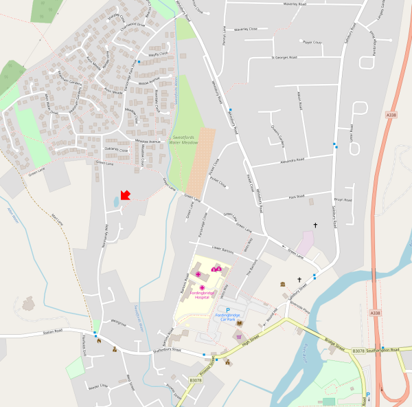 Bishop's Pond is a small wooded area (0.26 hectares) on the east side of Normandy Way, immediately north of Cottage Mews, with access (when working parties are in progress) from Cottage Mews, Fordingbridge, Hampshire SP6 1RJ (UK).
